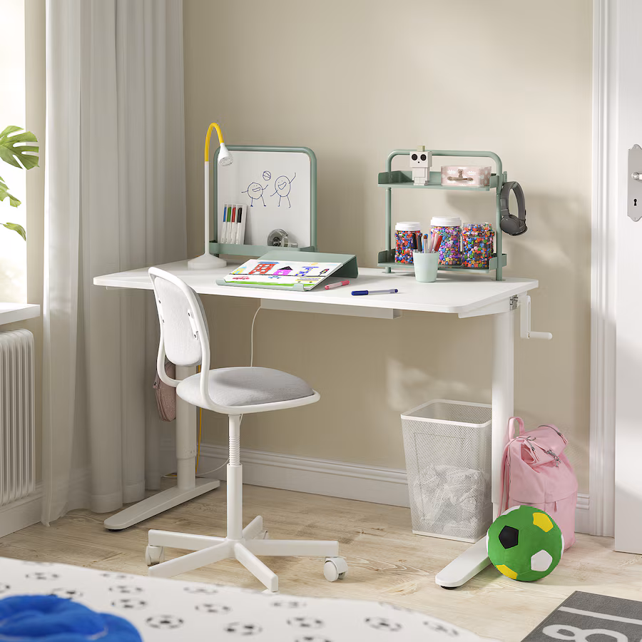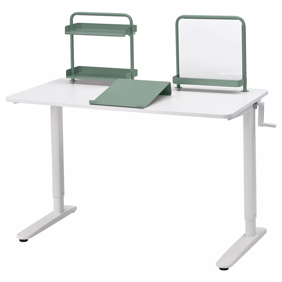 Sit-Stand Desk Combination with Storage, White, Light Grey, and Green quantity